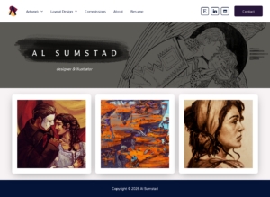 When Al Sumstad entrusted me with the honor of creating his multi-disciplinary portfolio website, I knew I would have to think outside of the box. Al is not only a concept artist and illustrator, but also a layout designer—and his portfolio needed to showcase his experience in each of these fields.